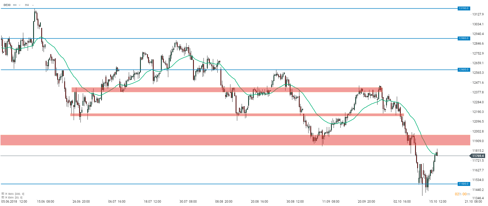 DAX (DE30 on xStation5) struggles in the vicinity of 33-period moving average