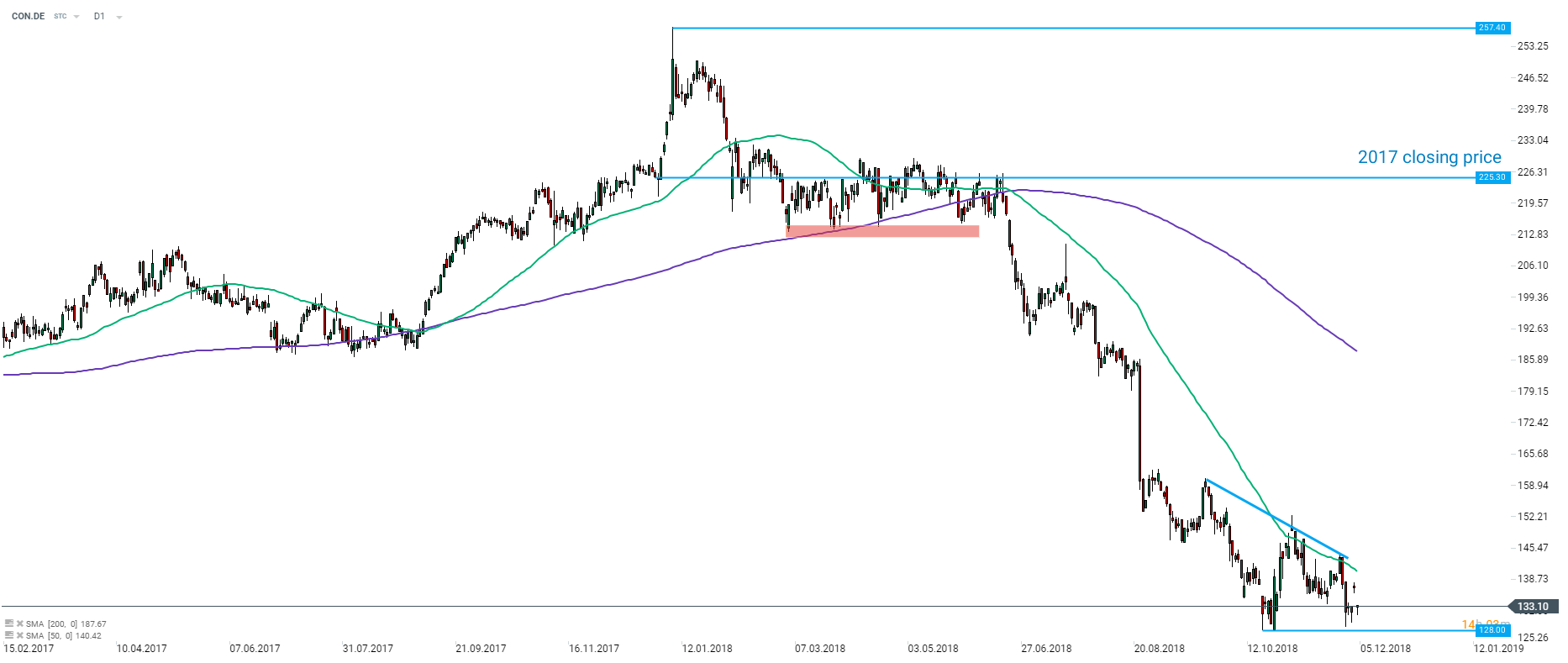 Continental (CON.DE) continues to be pressured along with the German car makers. The stock opened much lower today on the back of downbeat news in the tariff theme as well as downgraded received from analysts’. The stock is trading 41% lower YTD and 48.5% below its ATH at €257.40. Source: xStation5