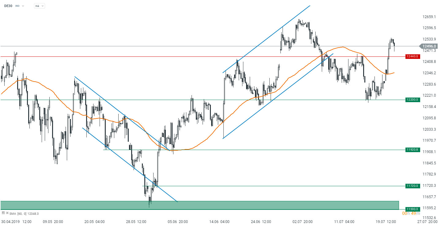 The DAX broke above the key resistance of 12 440 points. The next hours will be key for European stocks as the ECB meeting looms. Source: xStation5