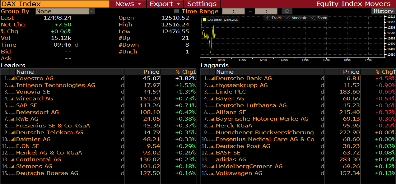 DB shares are leading the losses in the German index on Wednesday. Source: Bloomberg
