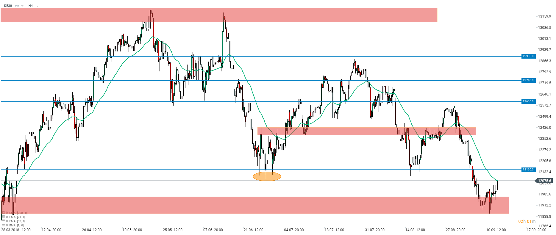 DAX (DE30 on xStation5) tests the 33-period moving average in the vicinity of the 12070 pts handle