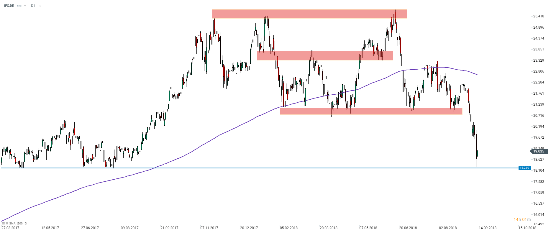 Infineon (IFX.DE) can draw some attention today. Apple, the American smartphone manufacturer, unveiled new models of iPhones, iPads and Apple Watches yesterday. Among new models of the US company bestseller iPhone one can find models with a bigger screen as well as some cheaper versions. As Infineon is one of the Apple’s major semiconductor suppliers the reception of new Apple products may greatly impact the company’s valuation. Despite the fact that Apple finished yesterday’s trading lower, Infineon is moving higher so far.