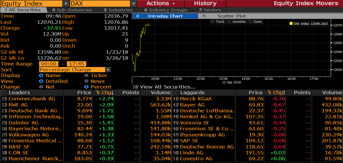 The underperformance of the Italian stocks at the beginning of the European trading session can result from La Stampa report. Daily newspaper claims that the Italian Finance Minister, Giovanni Tria, threatened to step down on the back of pressures exerted on him by the Five Star Movement. Tria is said to be constantly pressured by the governing coalition member party to find funding for the basic income election promise in the budget. According to the Ansa news agency the Five Star Movement wants to secure at least 10 billion euros for the idea in the next year’s budget. As Tria tries to bring heavily indebted country back on track such an expenditure would be a major setback. Another newspaper, La Repubblica, reported that Tria even told Prime Minister Conte that he is ready to leave the post in case he is the problem. However, after initial underperformance Italian FTSE MIB moved higher along with other European stock benchmarks.