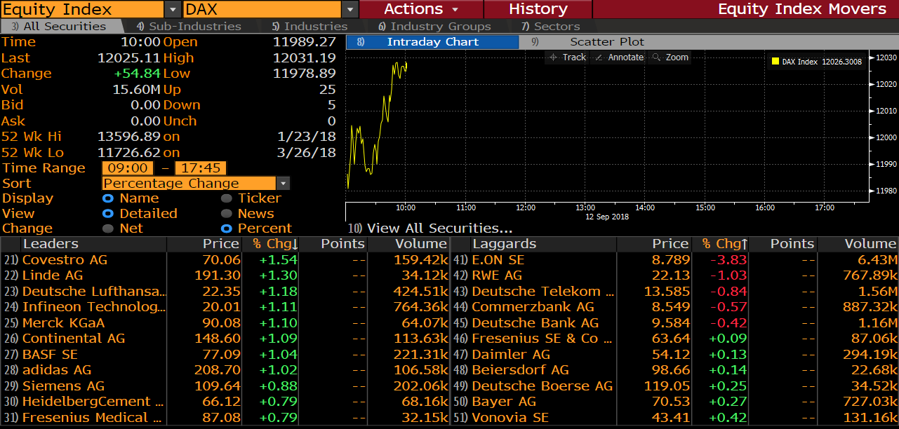 E.ON (EOAN.DE) is the worst performing DAX stock today. The lacklustre performance of the company’s shares could be attributed to the Morgan Stanley report. The Bank said that shares of the electric utility company may be pressured in the short term due to headwinds surfacing that are likely to extend over the next year. Morgan Stanley recognized that E.ON will likely continues to face FX headwinds in Turkey, Sweden and Hungary. Apart from that, restructuring costs may take their toll on the company's earnings in the near-term as well. The Bank left its recommendation for the stock unchanged at “equal-weight” while lowering its price target from €10.50 to €9.50.
