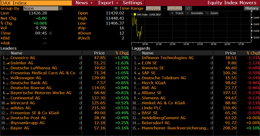 DAX members after the first hour of trade. Source: Bloomberg