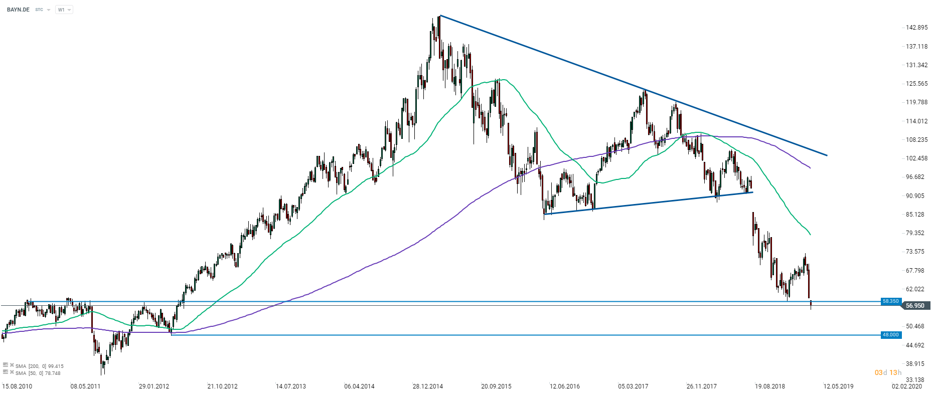 Bayer (BAYN.DE) keeps being pressured by legal woes surrounding Roundup weedkiller. Share price dived over 20% since the beginning of March. No relief can be spotted in sight as the stock broke below its previous local low of €58.35. In turn, the company is trading at the lowest levels since July 2012. In case downward move is continued one cannot rule out a test of the €48 handle. Source: xStation5