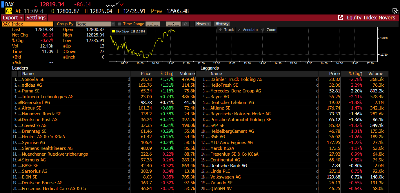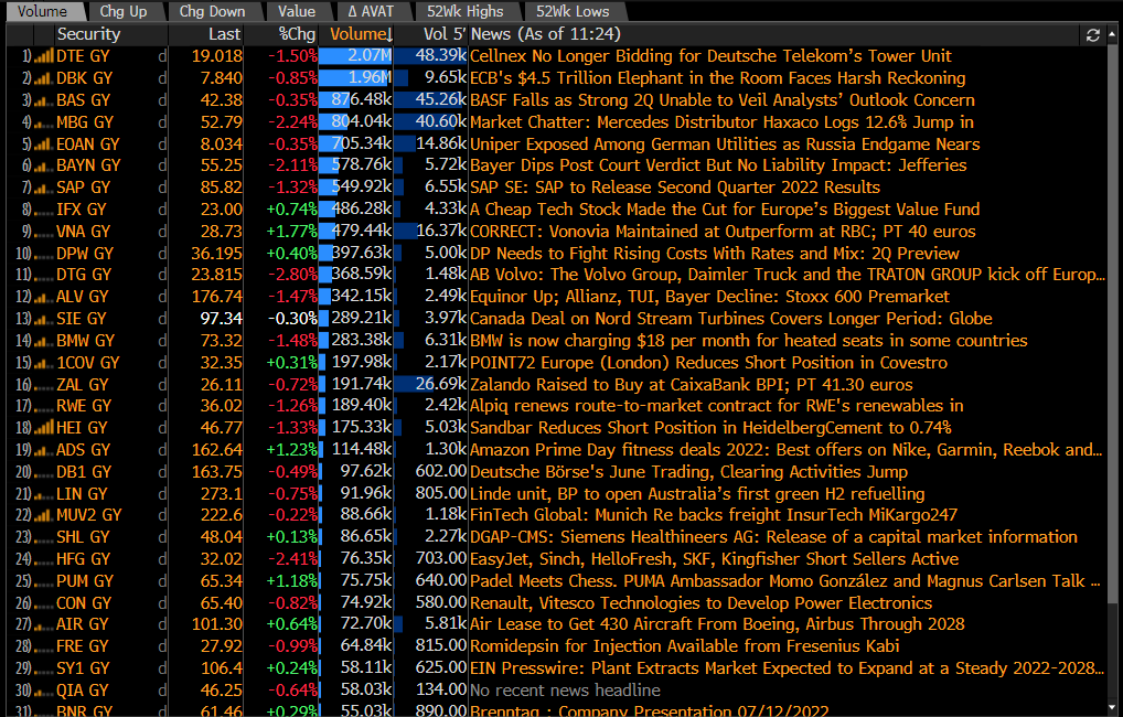 The most active stocks in the DAX index (DE30). Source: Bloomberg