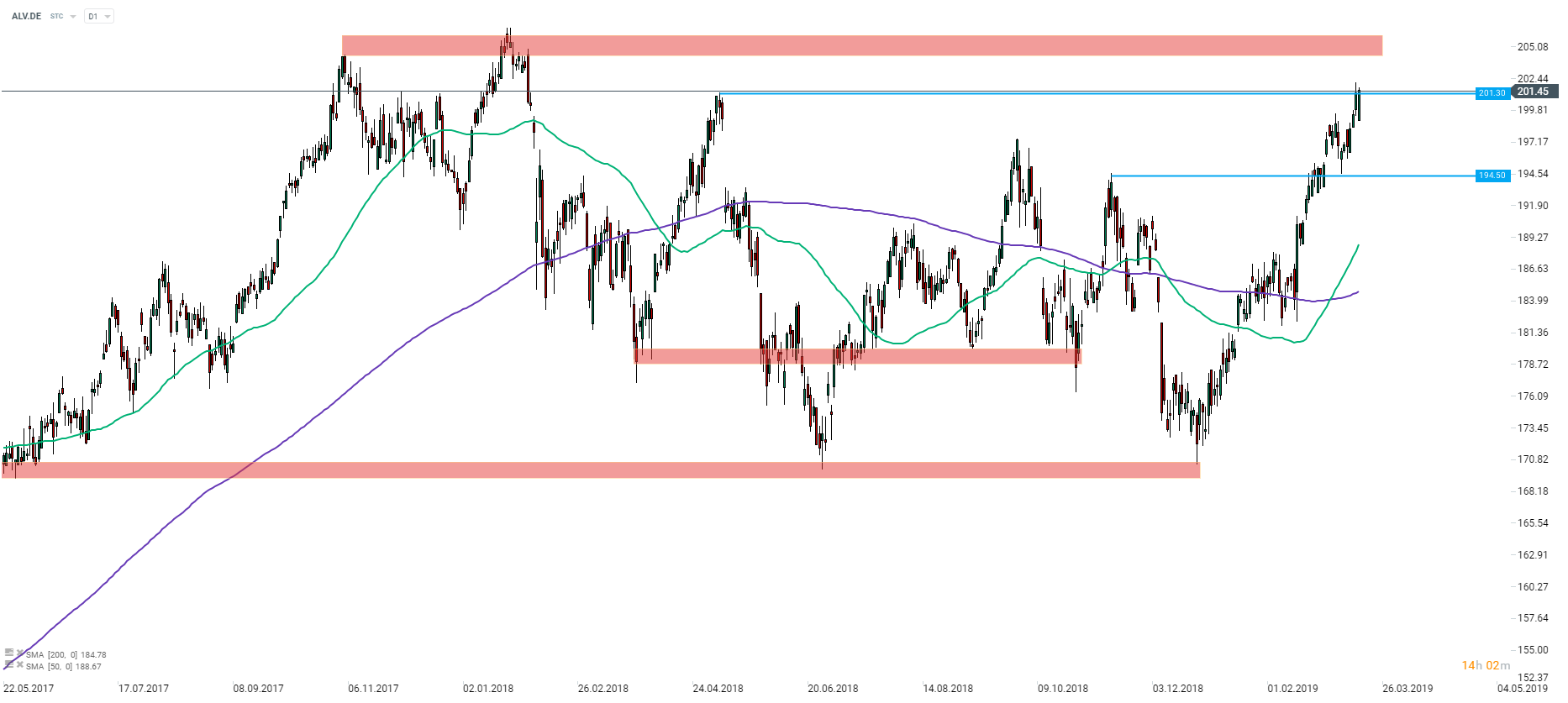 Allianz (ALV.DE) added almost 20% during the past 3 months. The company is trading at 14-month high and may be set to test peaks from late-2017 and early-2018 around €204-206 in case good sentiment prevails. However, the stock is still quoted way below its ATH from early-2000 (around €420). Source: xStation5