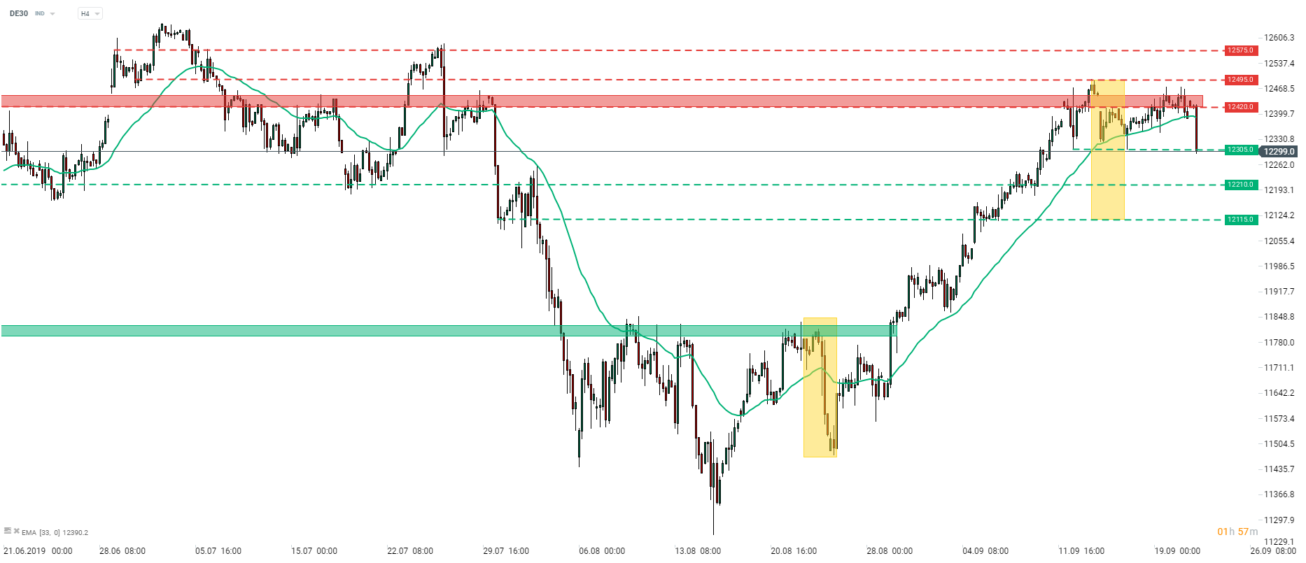 Weakness could be spotted at the beginning of Monday’s trading on the Old Continent. However, the situation got much worse following release of PMI data from Germany and France. Manufacturing continues to be lacklustre while services data deteriorated significantly. In turn, declines can be spotted on indices all across the Old Continent.
