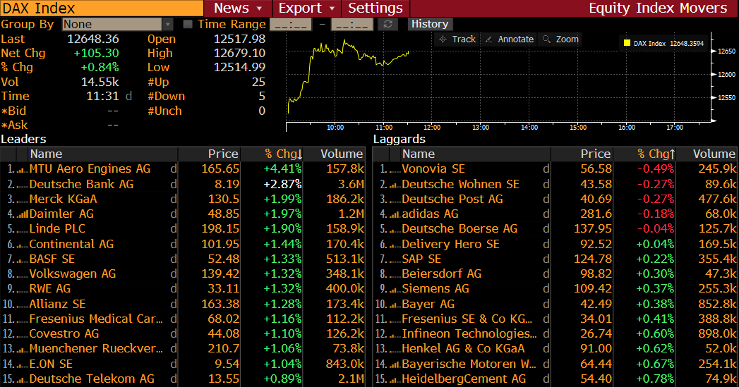 DAX members at 10:31 am BST. Source: Bloomberg
