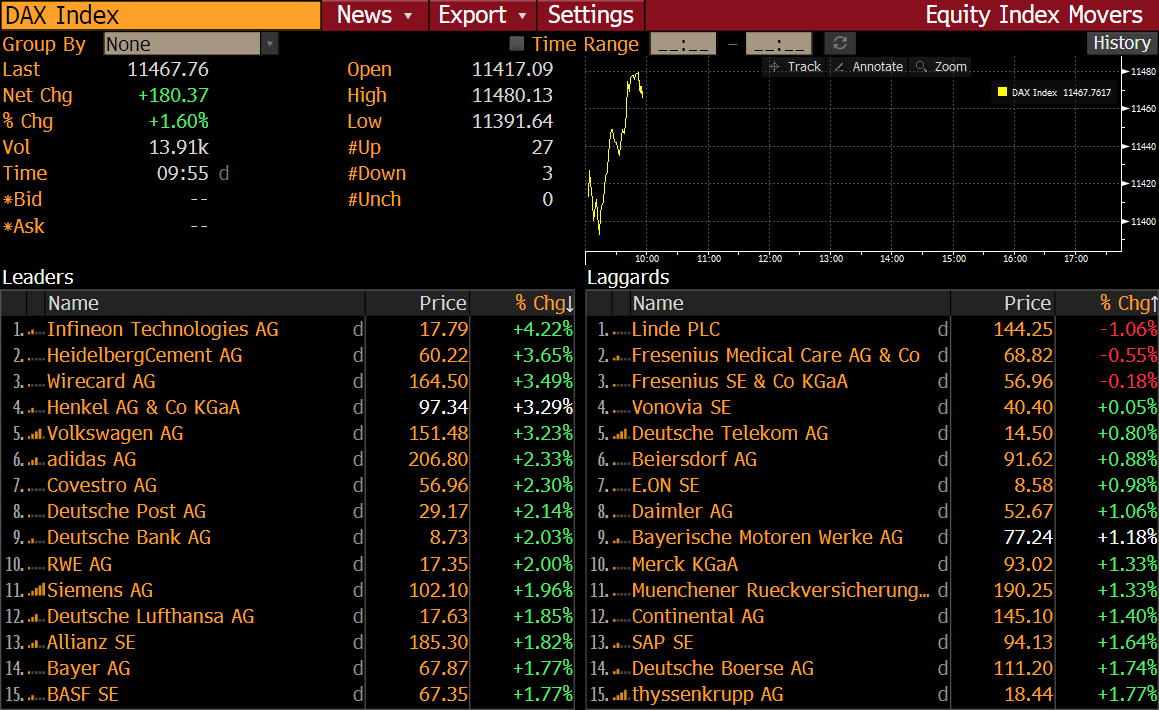 German blue chips companies are experiencing stellar beginning of the trading session on Wednesday. Source: Bloomberg