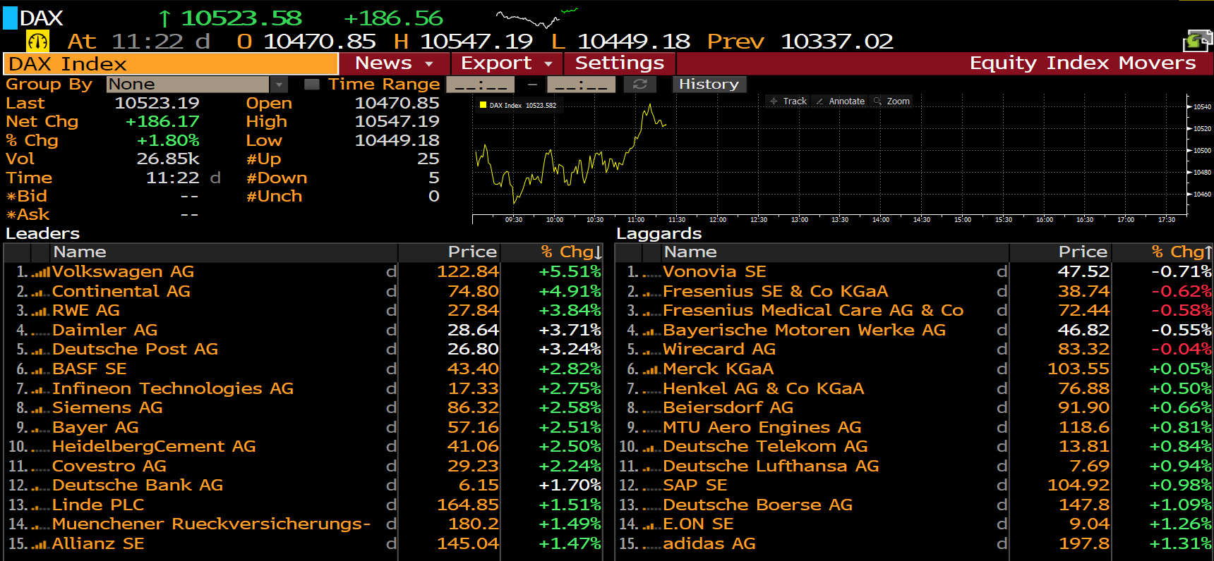 DAX members at 10:22 am BST. Source: Bloomberg