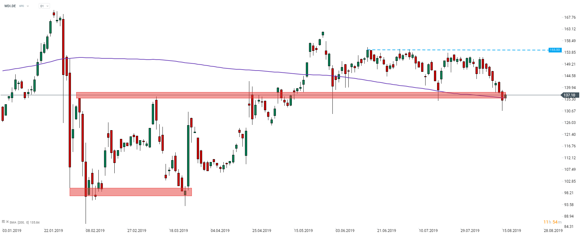 After a few failed attempts of breaking above the €155 handle, Wirecard (WDI.DE) dipped towards the lower limit of the recent trading range. The stock is trying to halt decline at the combination of a support zone and the 200-session moving average. A bounce higher from there could take the price back to the vicinity of the €155 handle. Source: xStation5