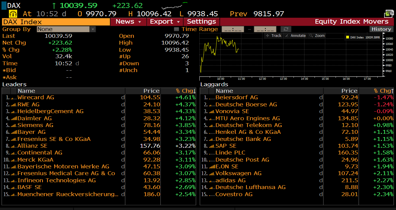 DAX members at 9:52 am GMT. Source: Bloomberg