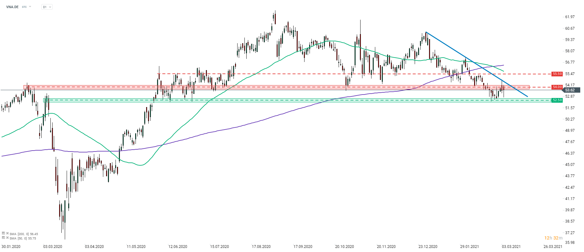 Share price of Vonovia (VNA.DE) is trying to climb back above the resistance zone at €54.00. The zone is marked not only by the previous price reactions and pre-pandemic highs but also by the short-term downward trendline. Failure to break above could trigger a pullback towards the support at €52.50. On the other hand, in case we see a break above, €55.50 swing level is the next resistance in line. Source: xStation5