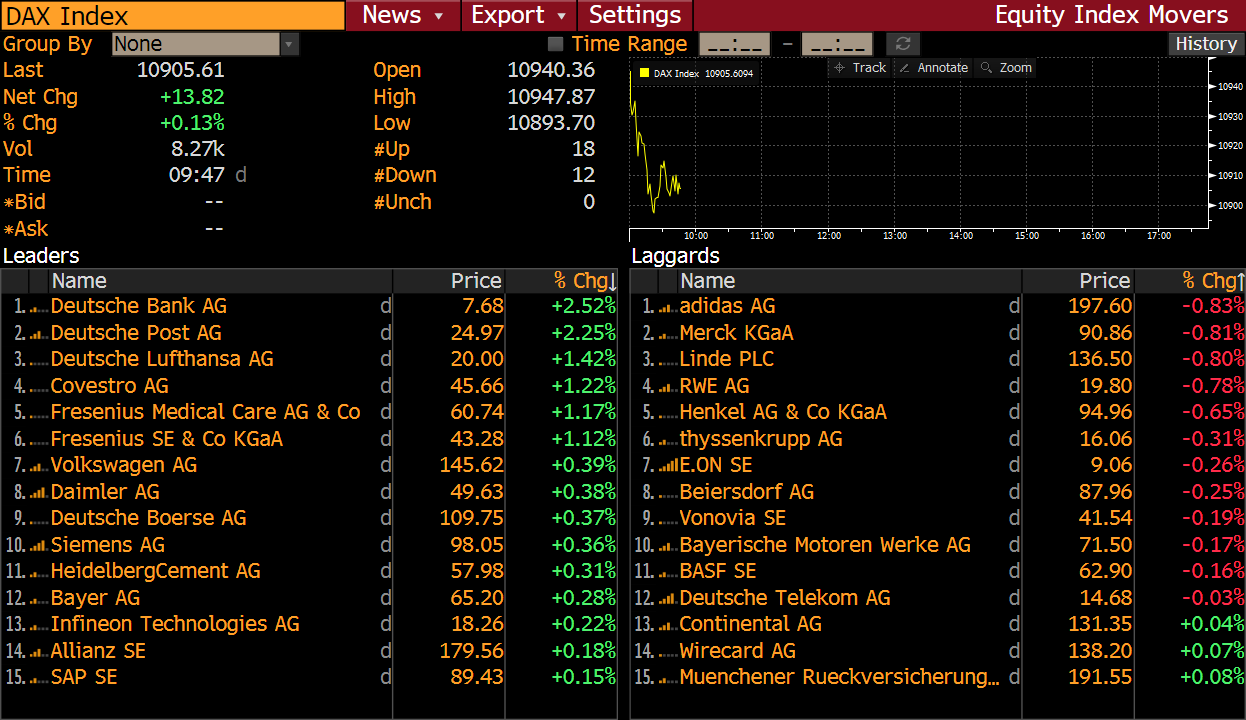 Deutsche Bank (DBK.DE) can be found among best performing DAX members for the second day in a row. Today’s superb performance can be linked to the recent money laundering rumours. When the news of Deutsche Bank’s involvement in the money laundering schemes first surfaced, company’s stock suffered. However, the Bank decided to launch an internal probe into the matter and it seems that shareholders are delighted with this fact. In turn, Deutsche Bank is trading 2.5% higher today.
