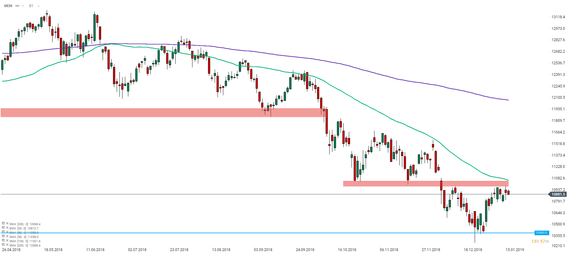 DAX (DE30 on xStation5) fails to break above and pulls back away from the 11000 pts mark