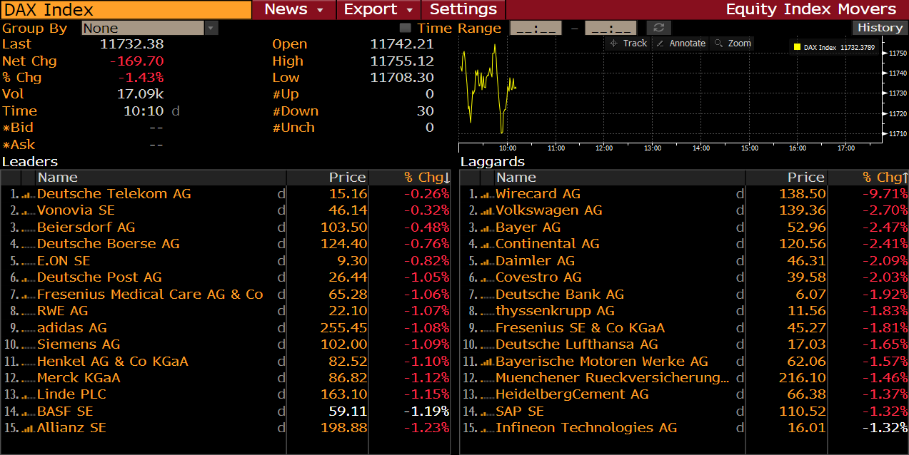 Wirecard (WDI.DE) is one of the worst performing DAX members on Friday morning. Apart from increase in risk aversion, the stock seems to be also pressured by the Handelsblatt report. The German business newspaper that company is seen by prosecutors as payment processor for scandal-involved FX broker, Option888. Wirecard responded saying that it performs due diligence to all of its clients and terminates all relationships that do not conform to legal, regulatory or internal rules.