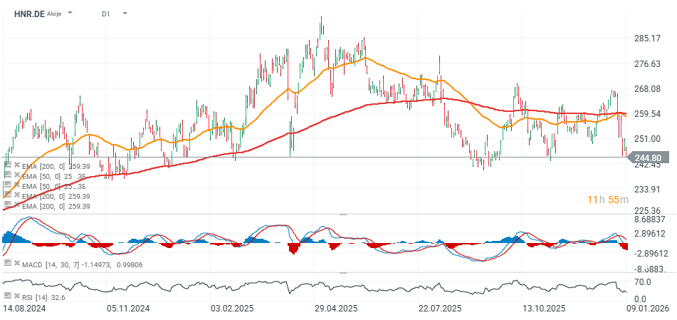 Morgan Stanley downgraded Hannover Re to Equal Weight and set a target price of €270, implying roughly 10% upside from current levels. Despite the target suggesting upside, the stock is sharply lower today, and sentiment across Germany’s financial sector remains broadly cautious.