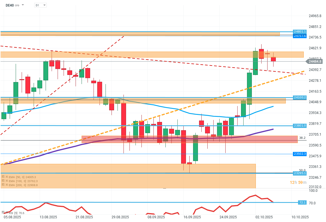 The European session is not starting too optimistically. The main indices of the Old Continent open in the negatives, and investor sentiment remains clearly cautious. They are still burdened by political uncertainty in France, where prolonged tensions around the government situation and fiscal reforms weaken the appetite for risk. Additionally, fresh macroeconomic data from Germany does not inspire optimism. DE40 and FRA40 contracts are down by 0.4%.