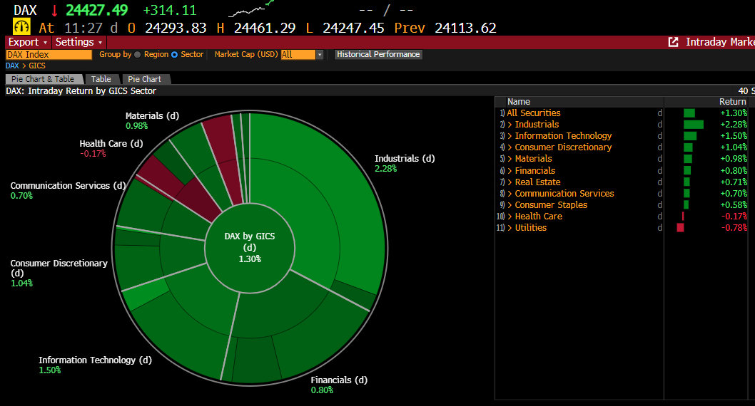 The German Index is experiencing unusual gains today. The industrial and IT sectors are rising the most, while utility companies are slightly down.