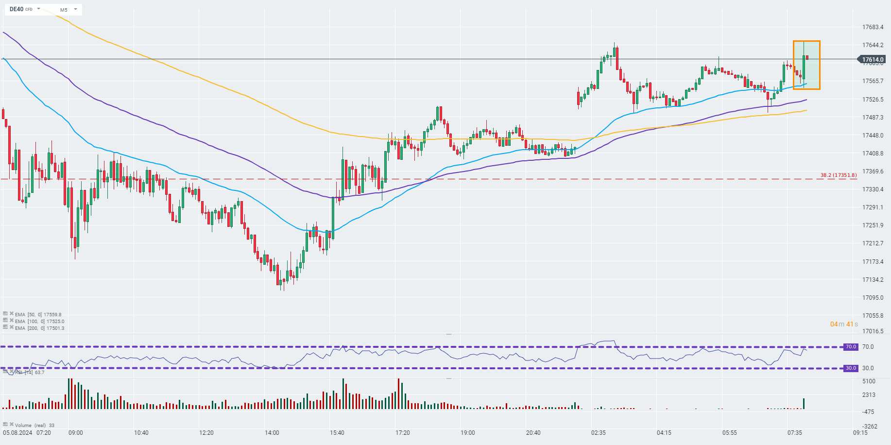 Germany's DAX rose briefly after the orders data was released. Source: xStation
