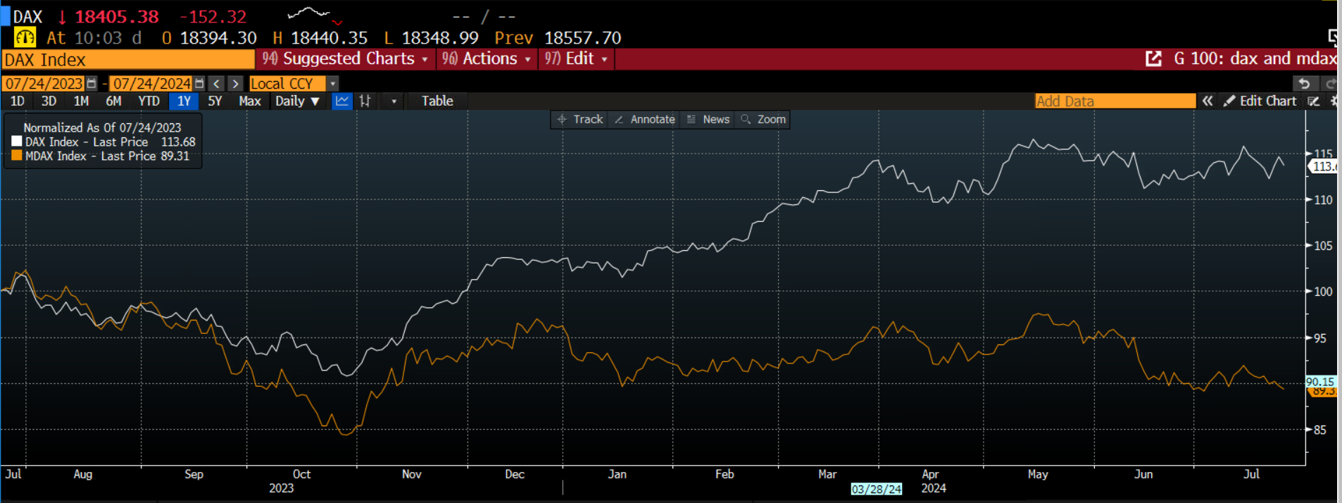 Germany: mid cap stocks lagging the blue-chip index, bucking global trend