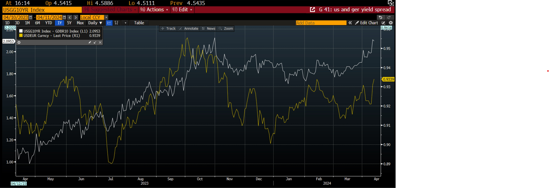 Chart 1: US and German interest rate differential and EUR/USD inverted