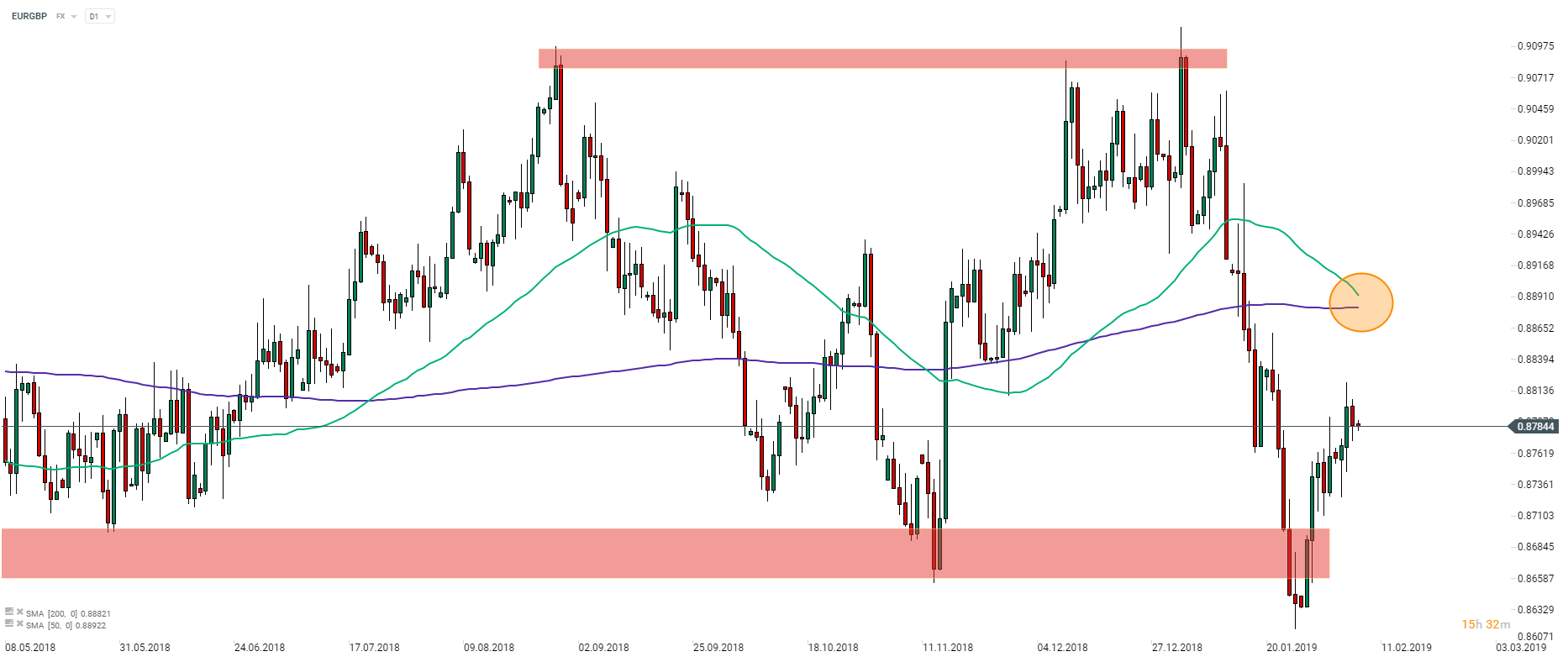 EURGBP managed to rebound off the vicinity of the support zone ranging 0.8660-0.8700. However, the latest upward move was put to a halt yesterday. In case the pair is to move lower we may see 50- and 200-session moving averages painting a death cross (orange circle) and, in turn, denting market’s enthusiasm. Source: xStation5