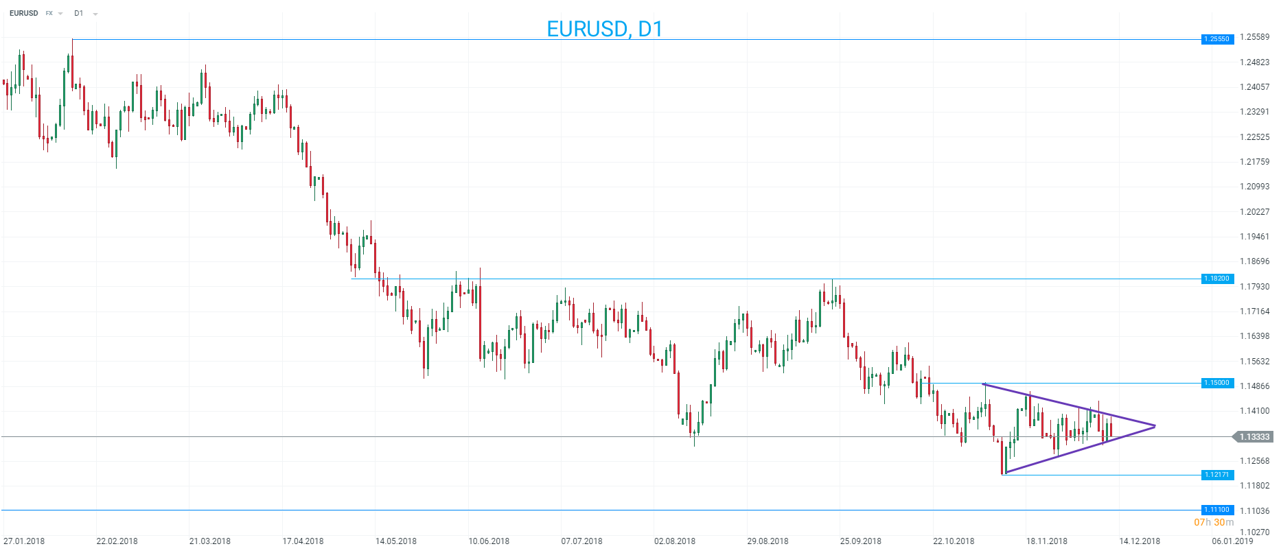 The EURUSD has traded in a narrowing range of late with price approaching the apex of this consolidatory triangle. Source: xStation