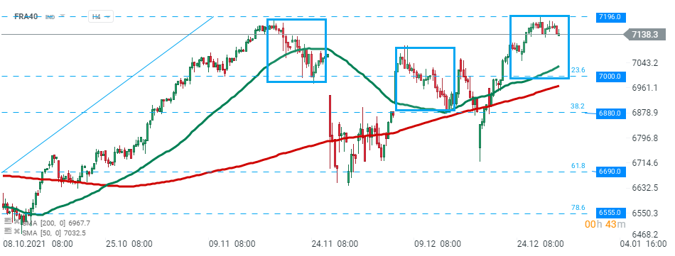Those from European markets that are open today started the final trading session of 2021 slightly lower. French CAC 40 fell 0.24%, FTSE 100 is trading 0.30% lower, while the Dutch AEX is down 0.1%. German, Spanish and Italian markets are closed while France and UK will close early therefore investors remain cautious amid thin trading volume and rising number of new COVID-19 cases. French Health Minister Olivier Veran said that due to the record number of new infections it is not appropriate to call the Omicron variant a wave anymore, as it is acting like a tsunami. While studies show that patients with the novelty variant face a lower likelihood of hospitalization, French health authorities still worry that the sheer number of rising cases could overburden the country’s healthcare system. Nevertheless European indices had a superb year, with the FTSE and the DAX recorded gains of 15% for this year, while the French CAC is close to a 30% gain.
