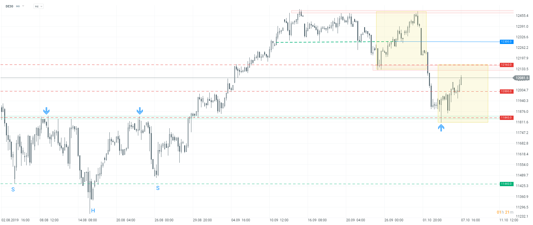 DAX closes with a positive result, a possible move towards resistance at 12150 points. H4 interval. Source: xStation