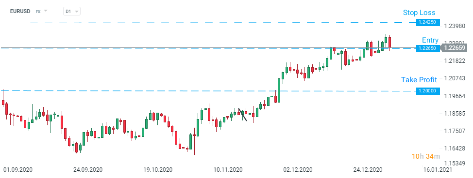TD Bank recommends taking a short position on EURUSD at market price with a target of 1.2000 and a stop loss order placed at 1.2425. Source: xStation5