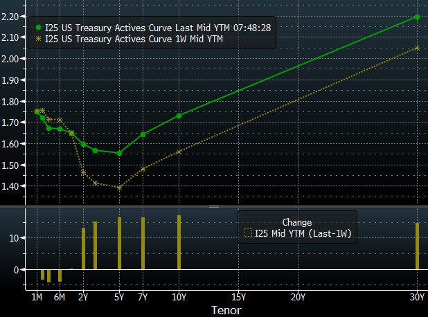 The front-end of the US yield curve lowered over the past week as the Fed announced purchases of T-bills. Source: xStation5