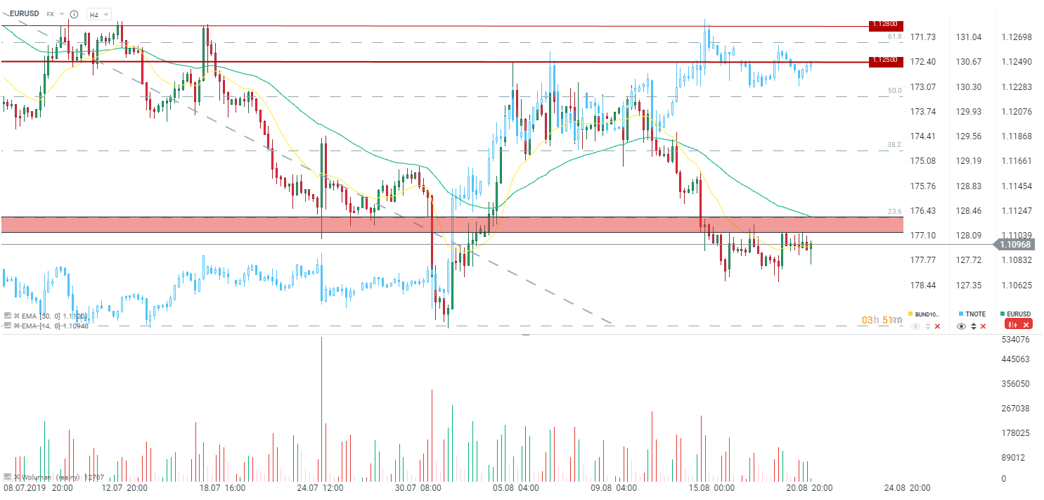 The first statement is very bullish for the greenback, because shows that further cuts are rather uncertain. On the other hand, the last remark mentioned above shows that the Fed is considering new monetary policy tools which may be very supportive for the equity markets (for example ETF buying) oraz negative rates. The dollar was gaining at the beginning, but after a few minutes the dollar is close to the yesterday’s closing.