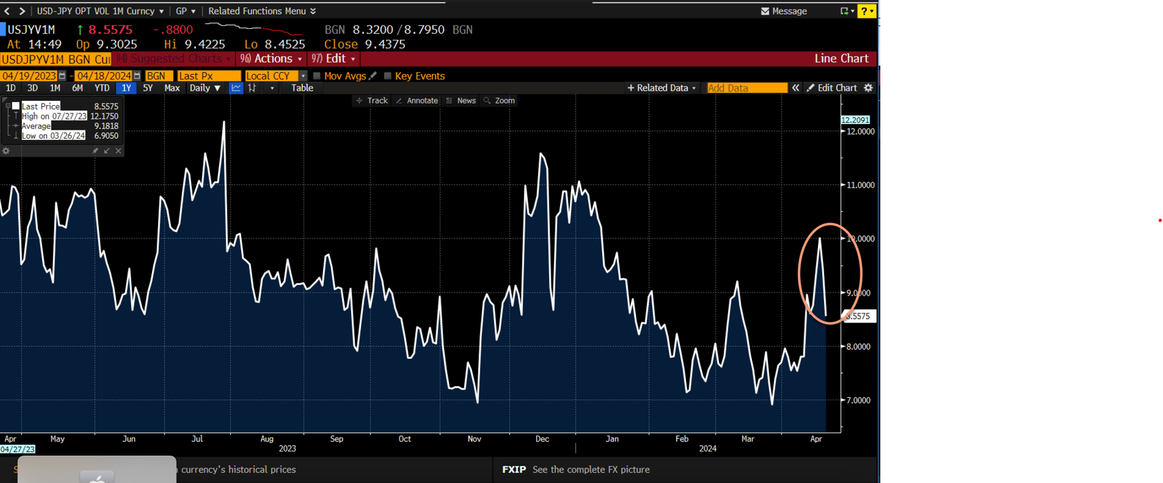 Chart 2: USD/JPY 1-month volatility