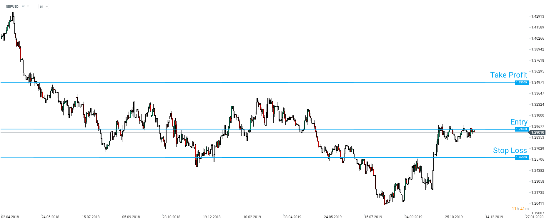Bank of America Merrill Lynch recommends taking a long position on GBPUSD at market price with a target of 1.3500 and a stop loss order placed at 1.2600. Source: xStation5
