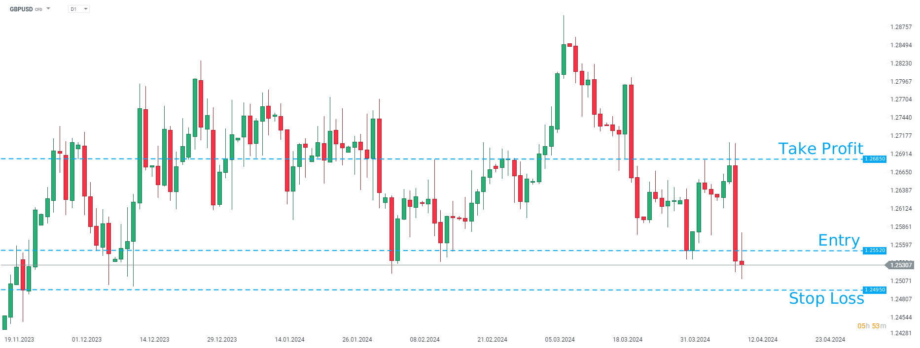 IFR recommends taking a long position on GBPUSD at market price with a target of 1.2685 and a stop loss order placed at 1.2495. Source: xStation5