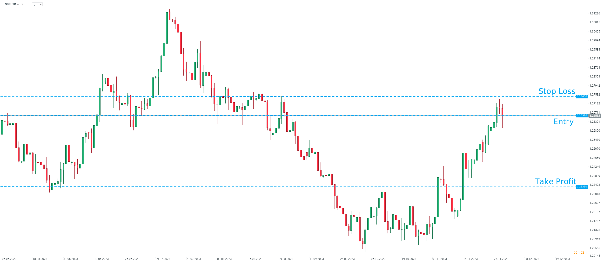 IFR recommends taking a short position on GBPUSD at market price with a target of 1.2335 and a stop loss order placed at 1.2745. Source: xStation5
