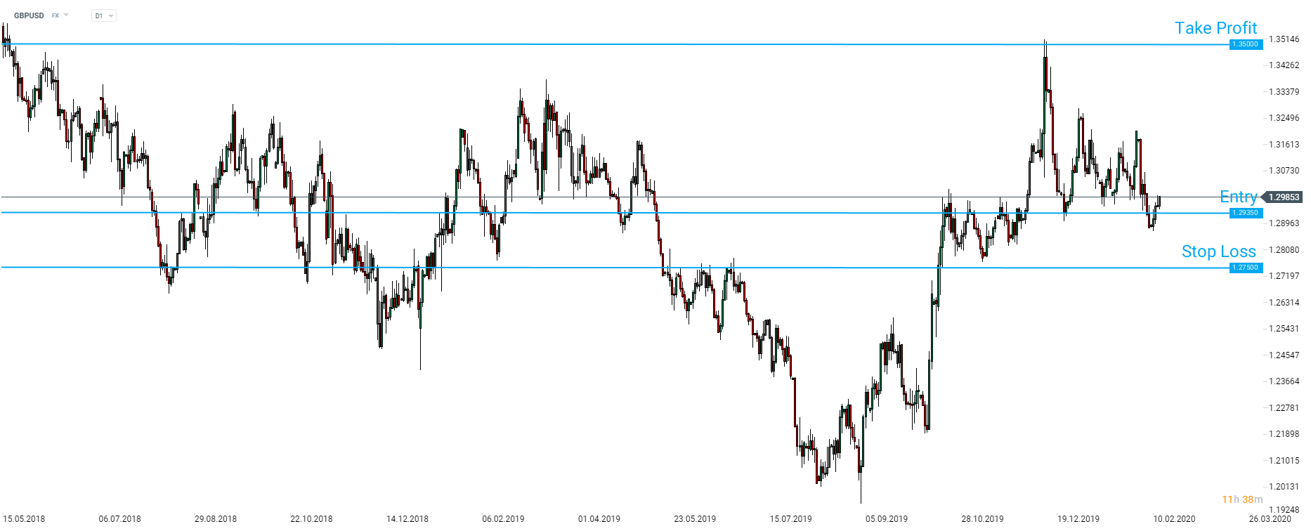 Standard Chartered Research recommends taking a long position on GBPUSD at market price with a target of 1.3500 and a stop loss order placed at 1.2750. Source: xStation5
