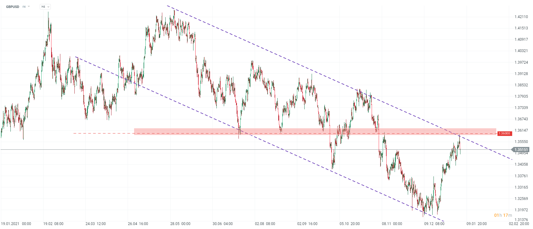 We got a final UK PMI services for December and while it saw a huge decline vs November (when it was at 58.5) at 53.6 it was still 0.4 higher than initially reported. This, along with stabilization of market sentiment, helped GBP recover in what might be an important day for the GBPUSD. The pair reversed sharply lower yesterday from a 2-month high and it was not just any reversal but a pullback from 2 important resistances – upper limit of a strong downward channel and a strong horizontal level of 1.36. For now it still looks like a downward trend continuation.