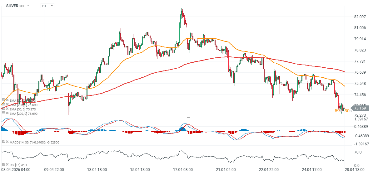 GOLD, SILVER, OIL charts (H1)