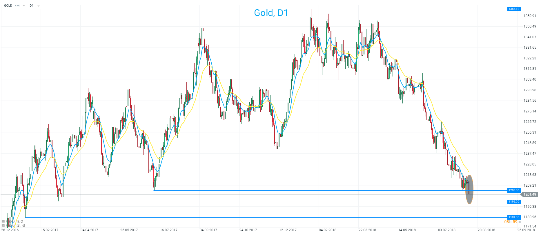 Gold falls below 1200 to hit lowest level since March 2017