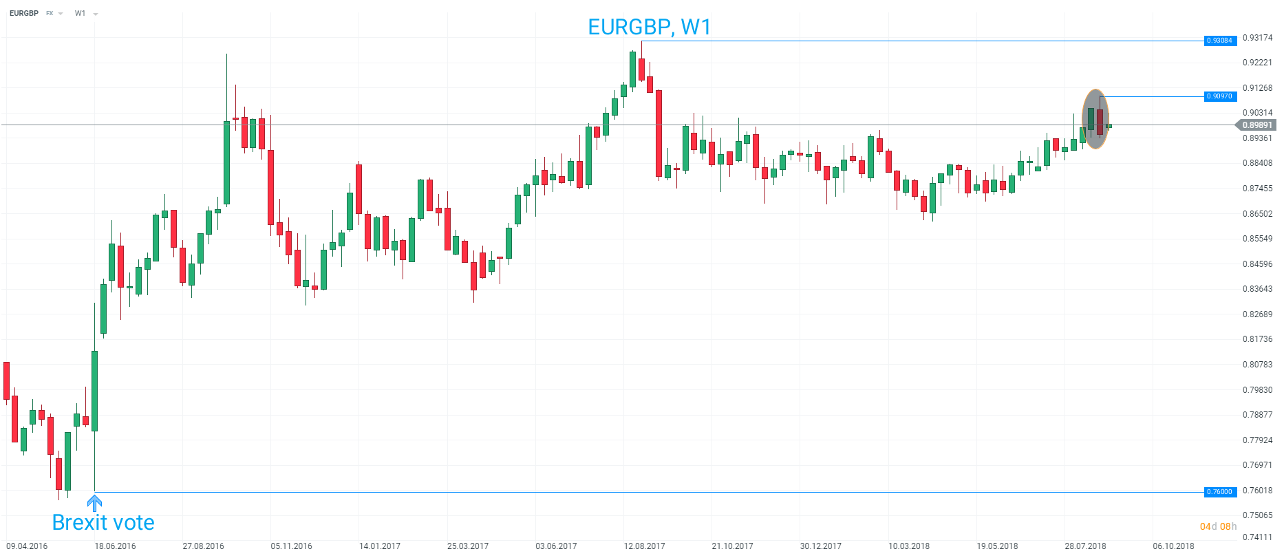 We earlier commented on the GBPUSD following the UK construction PMI data, so let’s now look at two other pairs involving the pound; EURGBP and GBPNZD