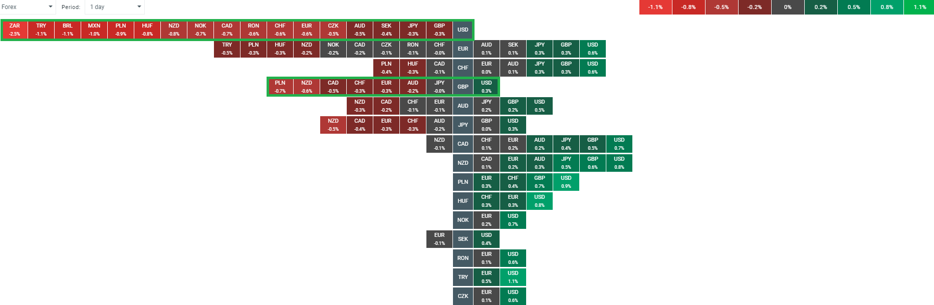 There haven’t been any major revelations from the questions and answers but it has seemingly helped stabilise the pound a little. While the GBPUSD rate dropped to its lowest level in over a week this morning the heatmap on xStation reveals that this was actually almost entirely due to a strengthening of the buck rather than pound weakness. The buck is appreciating against all of its peers on the day with the GBP actually the second strongest.