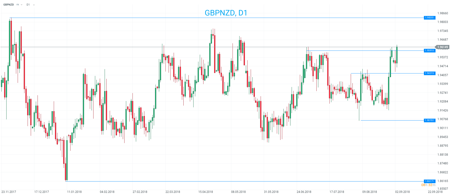 This pair has reached its highest level in 3 ½ months today as the market moves back above the 1.96 level. There has been several large up days in recent trade and this shows some strong buying pressure. Price is now not too far from longer term resistance going back to the tail-end of last year at 1.9835 and this could be worth keeping an eye on going forward if there is any further upside in the coming sessions. Source: xStation