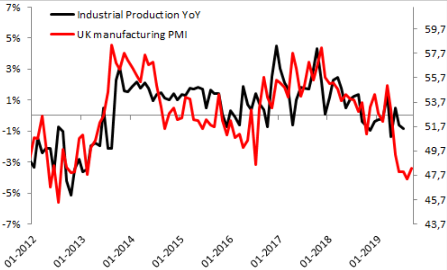 The latest PMI ticked higher but to see this as the start of a recovery is presumptuous to say the least with the beat largely explained by Brexit-related quirks once more. The longer term picture remains weak and close to its lowest level of this decade. Source: XTB Macrobond