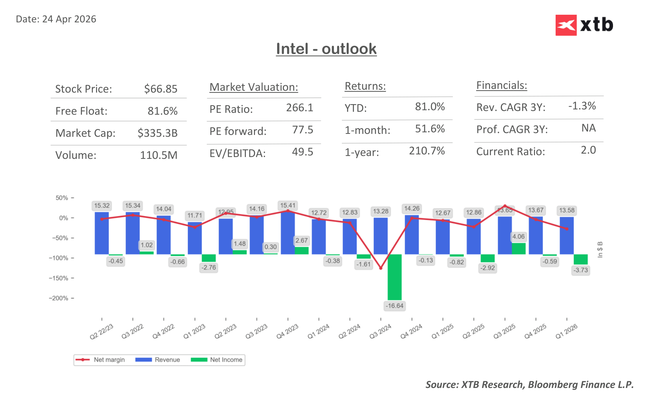 Intel’s results for the first quarter of 2026 clearly reinforce the view that the company is beginning to emerge from a multi-year period of operational weakness. The report itself delivered a solid beat versus expectations, but even more important are the forecasts for the coming months, which give the release a distinctly more growth-oriented tone and acted as a catalyst for a strong market reaction.