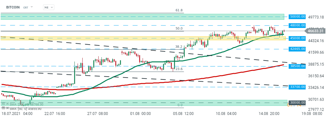 Bitcoin - breaking above the $50,000 psychological level is crucial for the bulls however this may not be an easy task given the sentiment on the traditional markets and outflow of funds. On the other hand, retesting this level could induce FOMO and provide fuel for the future rally. Meanwhile, the aforementioned $45,000 level acts as the key support. Source: xStaation5