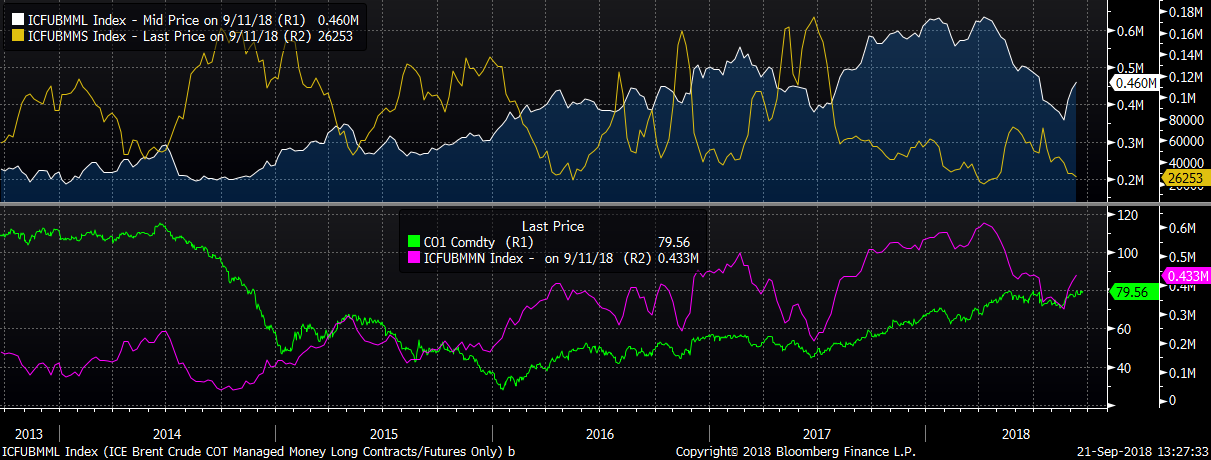 Change in the net speculative positioning may suggest that investors expected turmoil on the supply side. Source: Bloomberg